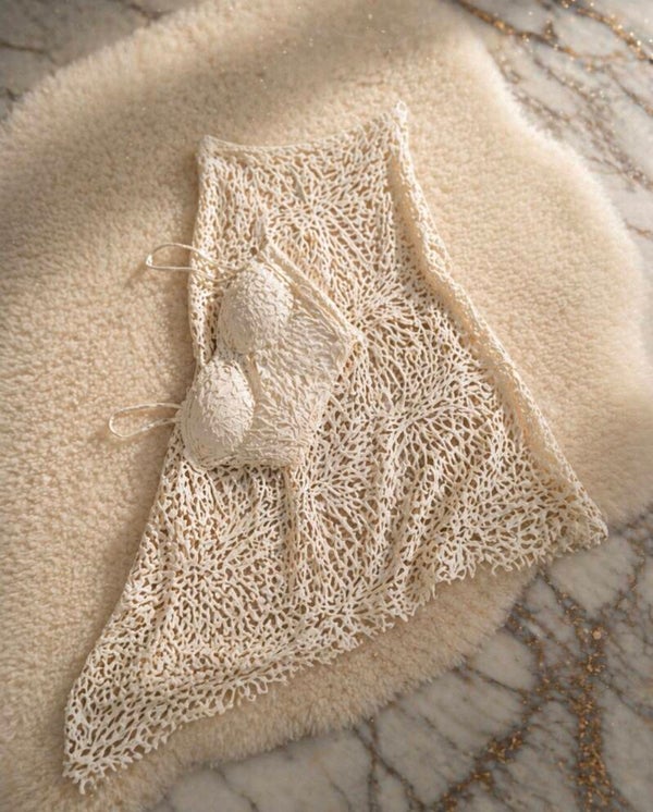 Luxe kanten set in zachte crème tint. Deze elegante tweedelige set bestaat uit een verfijnde rok en bijpassende top met prachtig uitgesneden bloemenpatroon. Perfect voor vakantie, zomeravonden, strandclubs of een stijlvolle gelegenheid. De luchtige stof draagt comfortabel en geeft een chique, vrouwelijke uitstraling. Combineer met hakken of slippers voor een complete look🤍